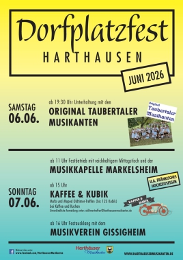 Weitere Informationen findet ihr auf unserer Homepage hier: Dorfplatzfest auf Instagram unter https://www.instagram.com/musikkapelle_harthausen/ oder auf Facebook unter www.facebook.com/HarthaeuserMusikanten